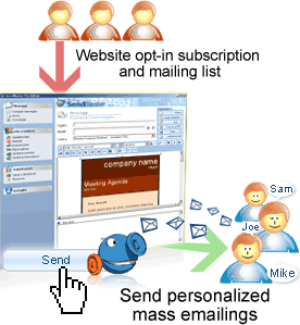 Emailing softwares are used to send mass emails to large mailing lists. The common email software’s CC feature (carbon copy email messages) becomes useless when the email must be sent to many contacts. This is why we developed an emailing software that sends a separate email to each mailing list contact. New mailing list contacts can be added from a website form that sends to SendBlaster’s email management address a special email with the word “subscribe” inside the email’s subject.